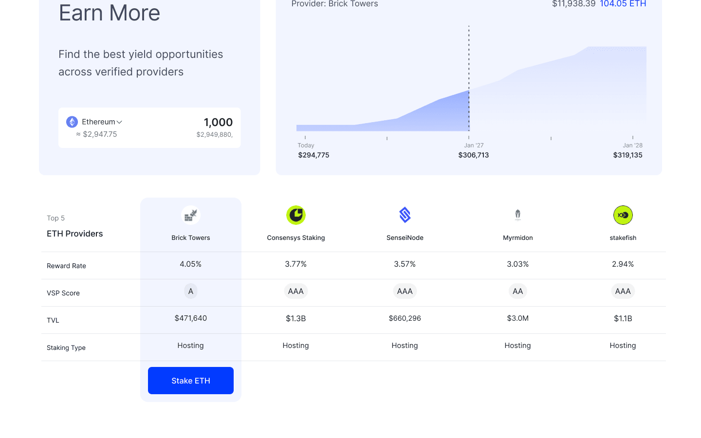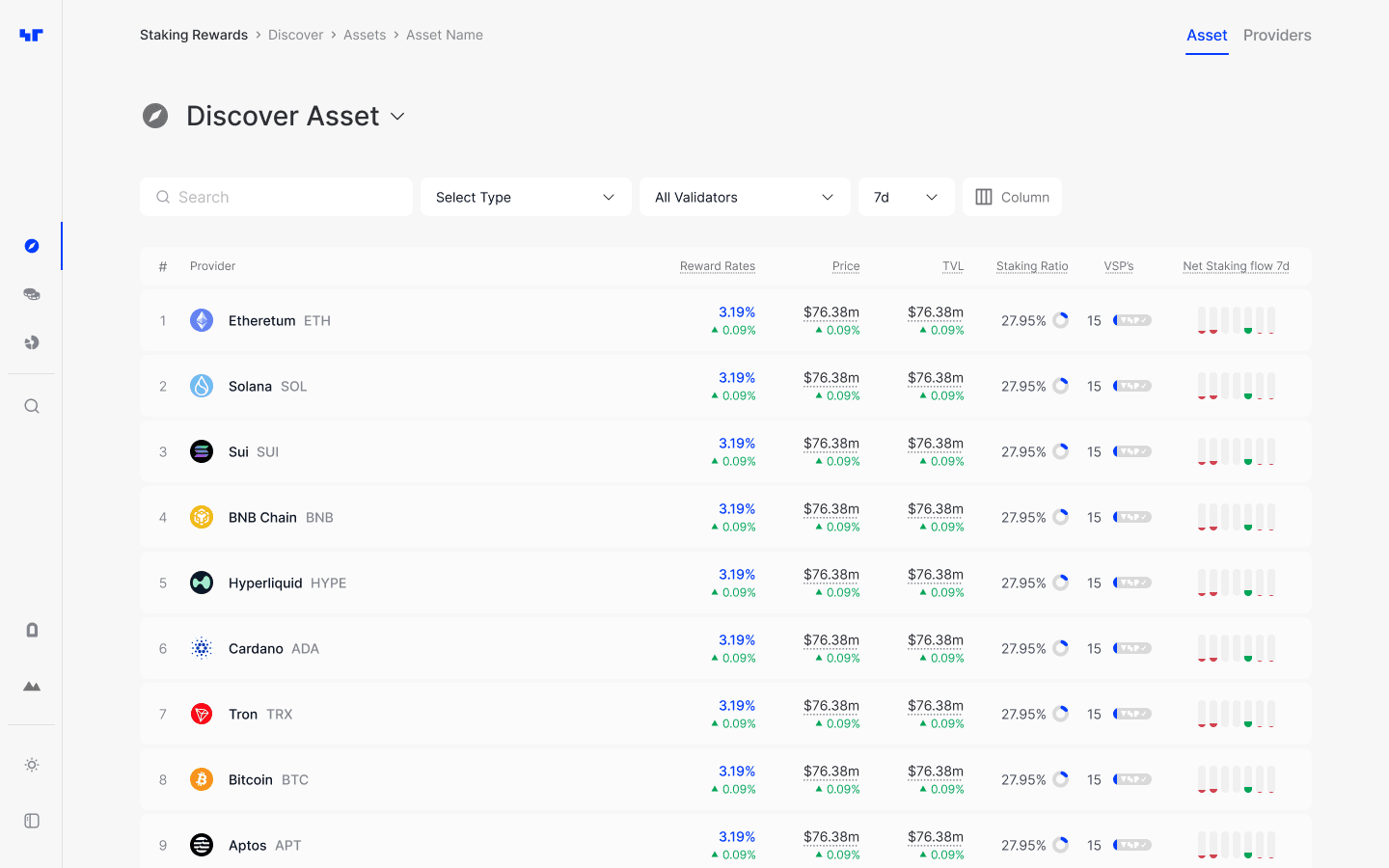 We redefined it around a single goal: helping users confidently stake and earn. This shifted the interface to a unified decision journey and from asset discovery to provider selection and reward simulation.